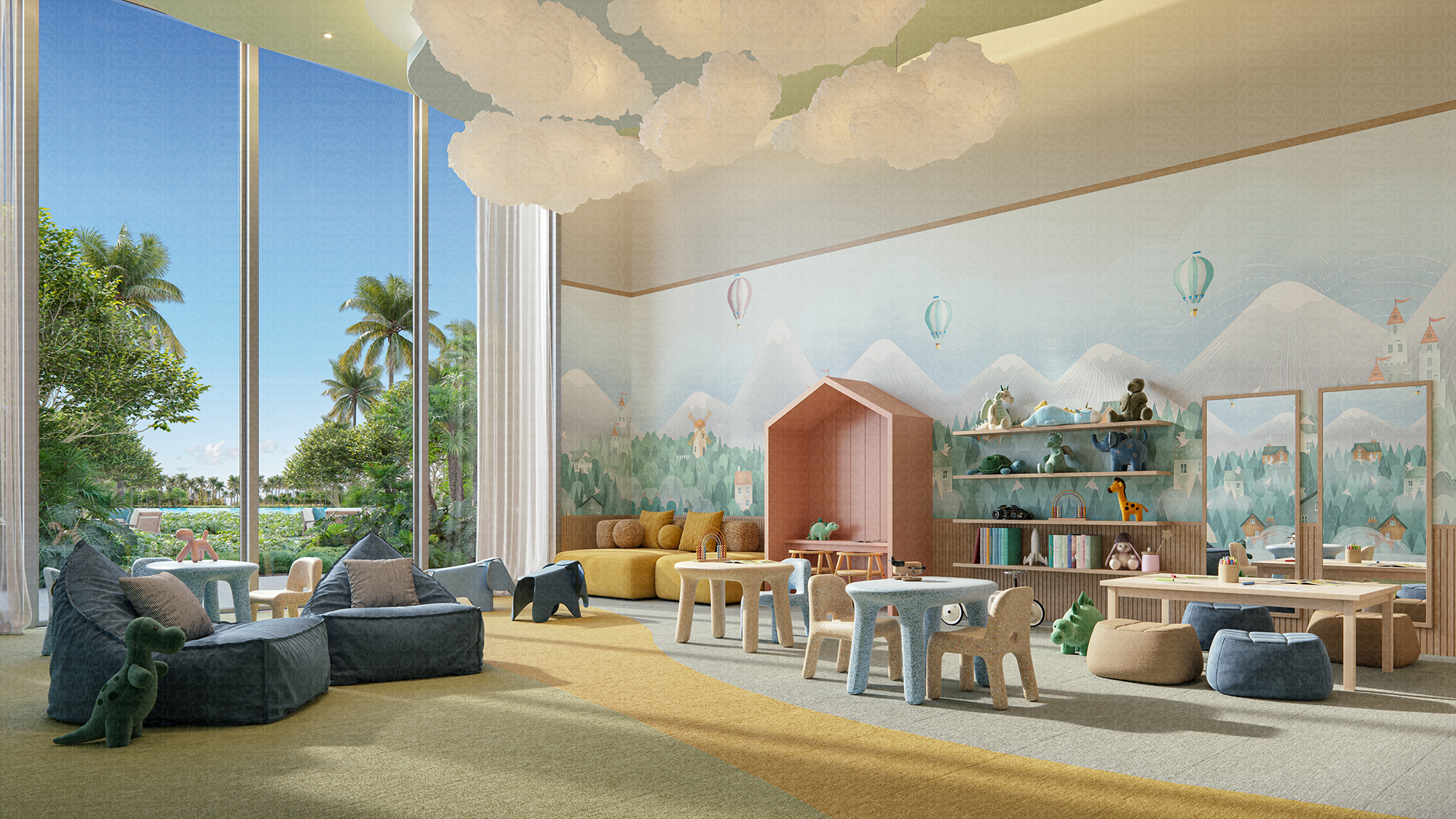 A brief stroll through landscaped grounds leads to a seven-acre Crystal Lagoon® with sandy beaches, cabanas, and picnic spots.