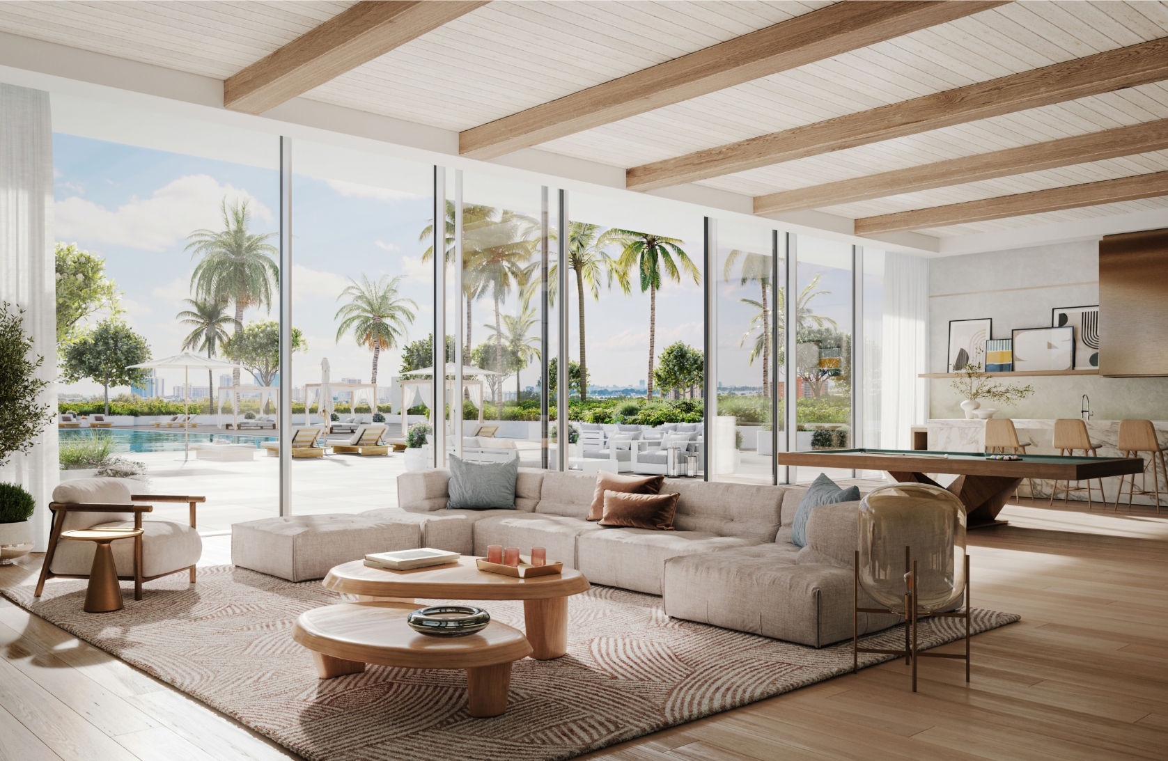 One Park Tower’s expansive sixth-floor social deck features views of Oleta River State Park and Biscayne Bay and is situated for refreshing coastal breezes.